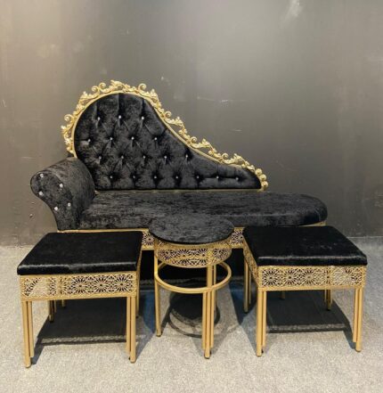 Demir Kollu Josefin Taht Ürün içerisinde 1 adet taht ve 3 adet puff bulunmaktadır